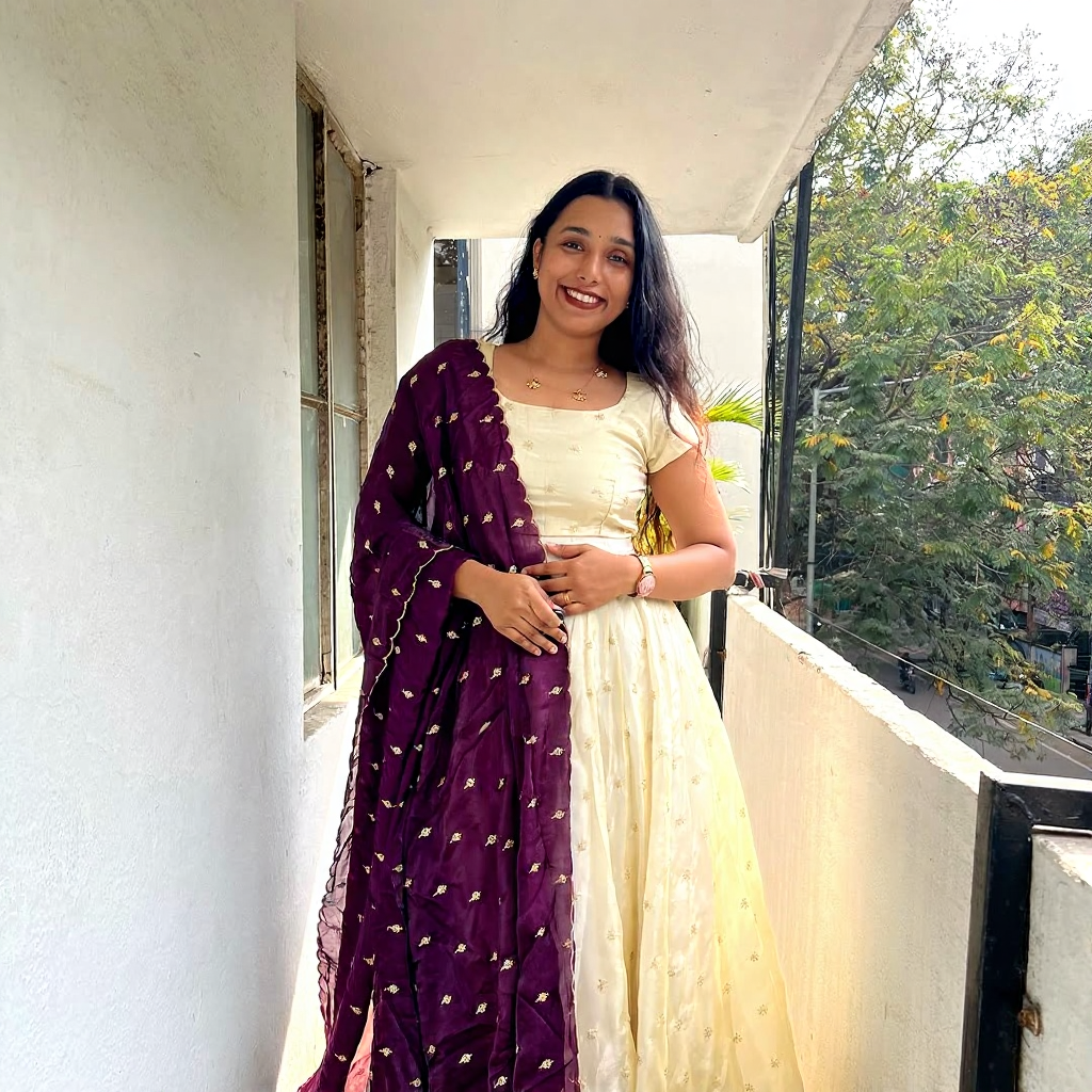 Elegant cream Anarkali dress paired with a dark Wine dupatta. Soft fabric, subtle embroidery, and perfect for festive & casual occasions.